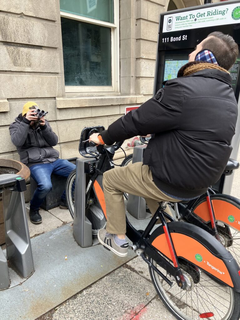 また、この講義では、ビデオアート作品の配給を行うトロントの団体「Vtape」のオフィスに施設見学に行ったりもしました。